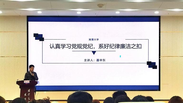 法色情直播 聂辛东老师主讲“认真学习党规党纪,系好纪律廉洁之扣”。他介绍了我党历年来的党规党纪建设,强调严守党纪是中国共产党实现自我革命的必由之路。他表示年轻干部贪污腐败的比例在逐年增加,因此应当重视青年学生的党规党纪教育。接着,聂老师阐释了党规党纪由“1+4”体系基本构成,即由“党章和党的组织法规、领导法规、自身建设法规、纪律法规”构成,并着重讲解了党的纪律法规和五大处罚措施。最后,他列举了几种常见的违法违纪行为,希望大家要有敬畏心、要存长远志、要能自律行。