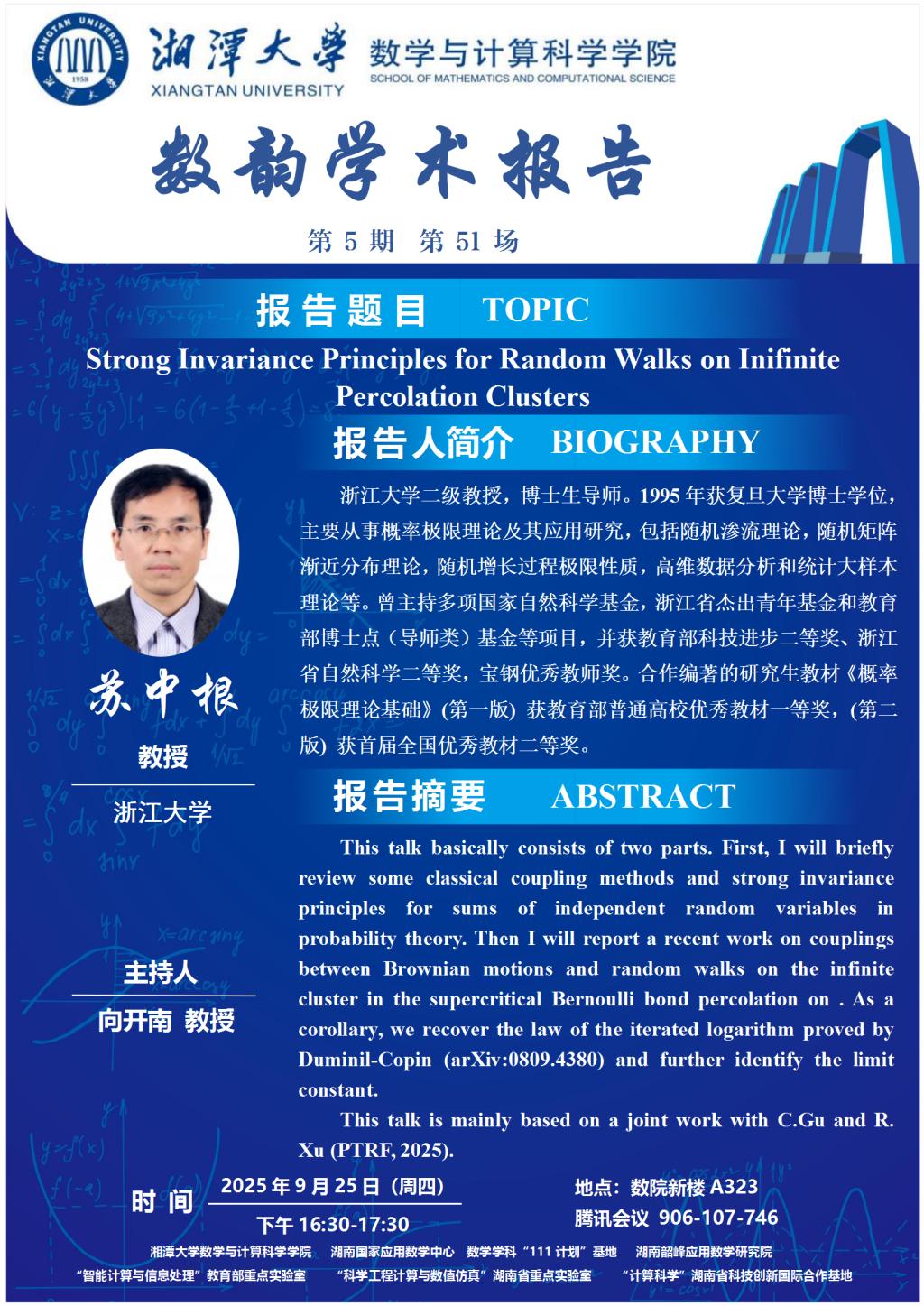 数韵学术报告-Strong Invariance Principles for Random Walks on Inifinite Percolation Clusters