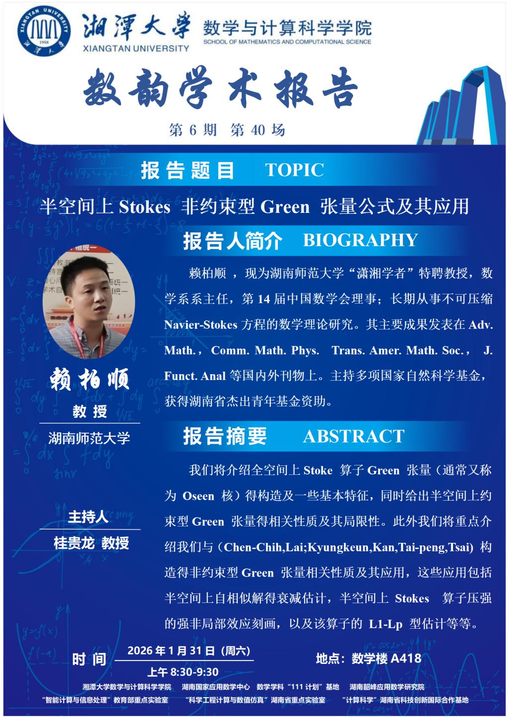 数韵学术报告-赖柏顺-半空间上Stokes 非约束型Green 张量公式及其应用